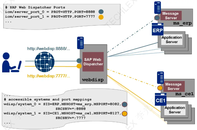 # **[什么是 ABAP 应用服务器的 Web dispatcher](https://segmentfault.com/a/1190000045280061)** ABAP 应用服务器中的 Web Dispatcher 是 SAP 系统架构中非常关键的组件,负责在浏览器或其他客户端与后端 SAP 系统之间建立通信桥梁。这个组件充当了 HTTP 请求的中间代理,它可以智能地将客户端请求路由到正确的后端服务器实例,确保系统的负载均衡、安全性和性能优化。 Web Dispatcher 的核心作用在于管理和优化 HTTP(S) 流量的路由。它作为一个反向代理,能够识别来自外部用户的请求,将其分配给不同的应用服务器,从而提升系统的可扩展性和容错能力。在复杂的 SAP 架构中,一个企业可能运行着多个 SAP NetWeaver 应用服务器实例,Web Dispatcher 就负责确保这些请求得到合理的分配,并为用户提供无缝体验。 ### ### **Web Dispatcher 的主要功能** 1\.负载均衡 Web Dispatcher 可以根据配置规则和服务器的当前负载,将请求分配给最合适的应用服务器实例。通过负载均衡,避免某一服务器因处理大量请求而过载,而其他服务器处于空闲状态。负载均衡可以基于多个因素,例如服务器的当前 CPU 使用率、内存使用情况,甚至是请求的类型。 真实世界的例子可以说明这项功能的关键性。某公司全球员工通过浏览器访问企业内部 SAP 系统进行日常业务操作,随着访问量的增加,系统可能面临性能问题。通过引入 Web Dispatcher 并进行负载均衡配置,企业可以确保来自不同地区的请求均匀地分布到各个服务器节点上,保证每个用户都能享受到良好的响应速度。 2\.安全性 Web Dispatcher 作为外部用户访问 SAP 系统的入口,通常部署在 DMZ(非军事区)网络中,直接与外部网络(如互联网)通信。这使得它成为关键的安全屏障。Web Dispatcher 通过 HTTPS 对传输的数据进行加密,并支持 SSL 终止,这意味着它可以处理 SSL/TLS 的加解密过程,从而减轻后端应用服务器的计算负担。此外,它还可以基于 IP 地址或域名对请求进行过滤,防止未经授权的访问。  举个例子,假设某企业有一个面向外部供应商的 SAP 系统,供应商可以通过这个系统提交订单和查询库存情况。Web Dispatcher 就可以确保这些外部供应商的请求通过 HTTPS 进行安全传输,并且只允许来自授权供应商的 IP 地址的请求通过防火墙和进入 SAP 系统。 3\.优化系统性能 Web Dispatcher 还能通过缓存和压缩来提升性能。例如,对于静态内容(如图片、JavaScript、CSS 文件等),Web Dispatcher 可以缓存这些资源,避免每次请求都必须经过后台服务器处理,从而减少后台服务器的负载。对于请求的传输,它还可以压缩数据,减少网络带宽的占用。 4\.路径路由 Web Dispatcher 可以基于 URL 的路径部分将请求路由到不同的后端服务器。例如,某些特定模块的功能可能托管在专门的服务器上,而不是整个 SAP 系统的所有功能都运行在同一个服务器集群中。通过基于路径的路由,Web Dispatcher 能够将不同类型的请求精准地引导到特定的服务器,提高系统的整体灵活性。 例如,如果企业的 SAP 系统包含一个用于财务管理的模块和一个用于人力资源管理的模块,Web Dispatcher 可以将所有与财务管理相关的请求路由到专门处理财务模块的服务器集群上,而将与人力资源管理相关的请求路由到另一组服务器上。这种方法不仅提高了资源利用效率,也降低了各个模块之间的相互影响。 ### ### **Web Dispatcher 的工作原理** Web Dispatcher 的工作方式可以用一个简单的图解说明:当用户从浏览器中发出 HTTP 或 HTTPS 请求时,这个请求首先到达 Web Dispatcher。Web Dispatcher 作为代理,接收到请求后,它会根据内部配置的规则来决定将请求转发给哪个后端服务器。这个过程中,Web Dispatcher 会检测每个服务器的负载情况,确保将请求转发到最适合的服务器。此外,它会处理 SSL 加密流量,并对数据进行优化。 一个实际的案例是某全球企业的 SAP 系统需要支持大量用户的同时访问。由于企业在多个国家有服务器集群,Web Dispatcher 被配置为根据用户的地理位置和服务器的当前负载,动态调整用户请求的路由,从而提高响应速度,减少服务器过载的风险。用户从美国访问时,他们的请求会优先路由到位于美国的服务器,而欧洲用户的请求则被路由到欧洲的服务器。通过这样的配置,企业不仅提升了用户体验,还优化了全球服务器资源的使用。 ### **Web Dispatcher 的配置和管理** SAP Web Dispatcher 的配置相对灵活,可以通过多种方式进行,包括文本文件配置、SAP GUI 界面以及命令行工具。在配置过程中,管理员可以定义多个服务器实例、设置负载均衡规则、配置 SSL 证书以及定义 IP 过滤规则等。 在配置过程中,常见的关键文件是 sapwebdisp.pfl,这个文件包含了 Web Dispatcher 的核心配置选项,例如: * wdisp/system\_X 配置了每个后端服务器的详细信息。 * wdisp/ssl\_\* 参数配置了 SSL 相关选项。 * icm/host\_name\_full 和 icm/server\_port 定义了 Web Dispatcher 自身的网络接口。 一个典型的企业场景是,管理员在设置 Web Dispatcher 时需要为多个应用服务器配置不同的负载均衡策略。假设企业的某个 SAP 系统需要处理大量财务报表生成请求,而这些报表生成任务非常消耗服务器资源,管理员可以通过在 wdisp/system\_X 配置中设置特定的服务器专门处理这类任务,并为这些服务器分配较高的资源优先级,以确保它们能够高效完成任务,而不影响其他用户的操作体验。 ### **Web Dispatcher 的部署位置** Web Dispatcher 一般部