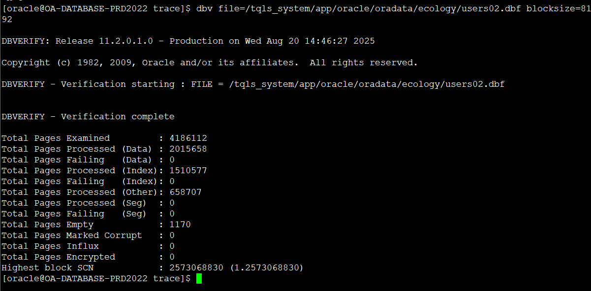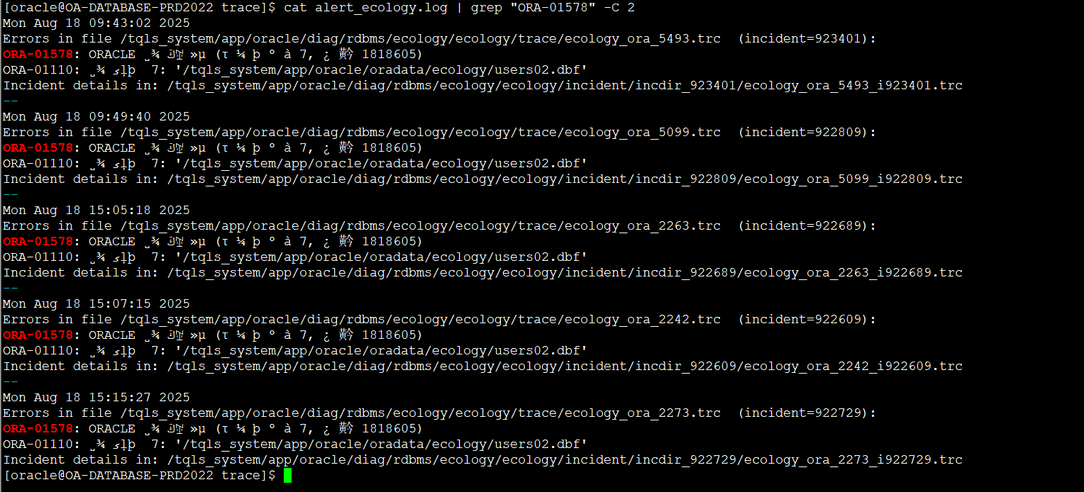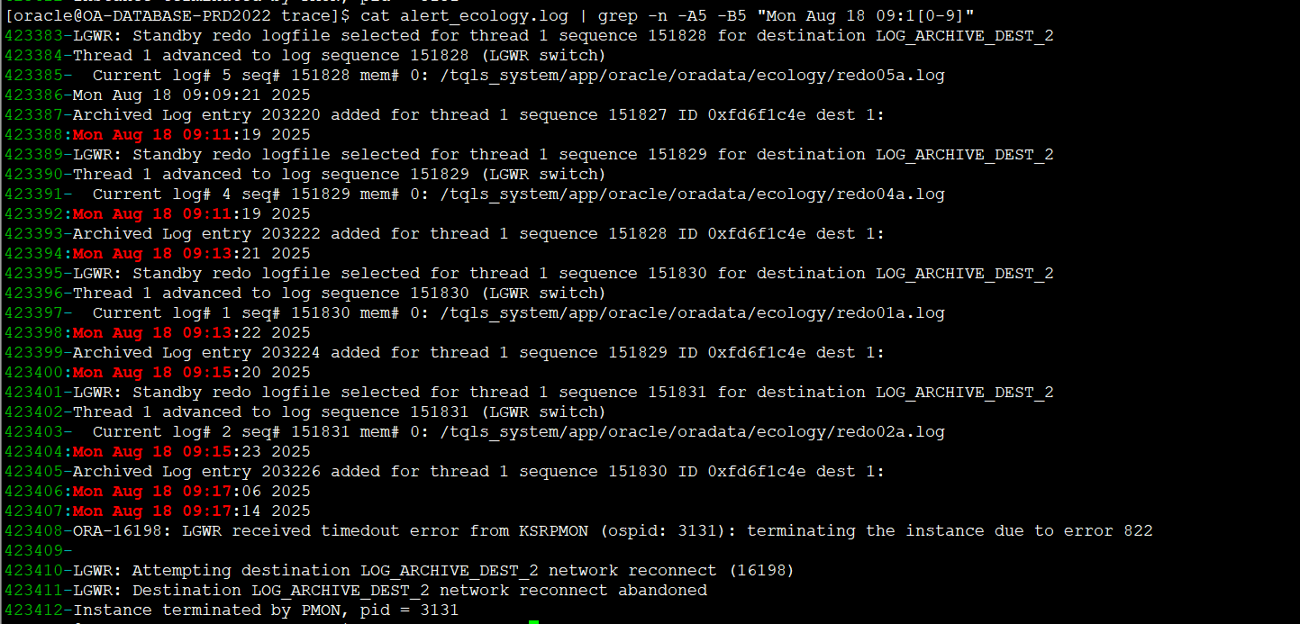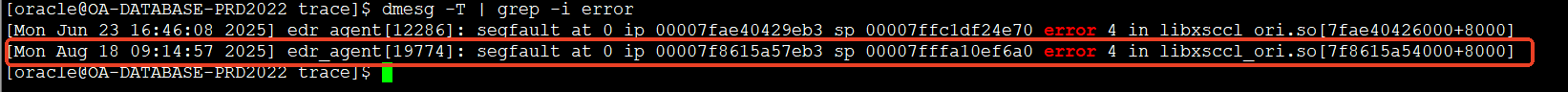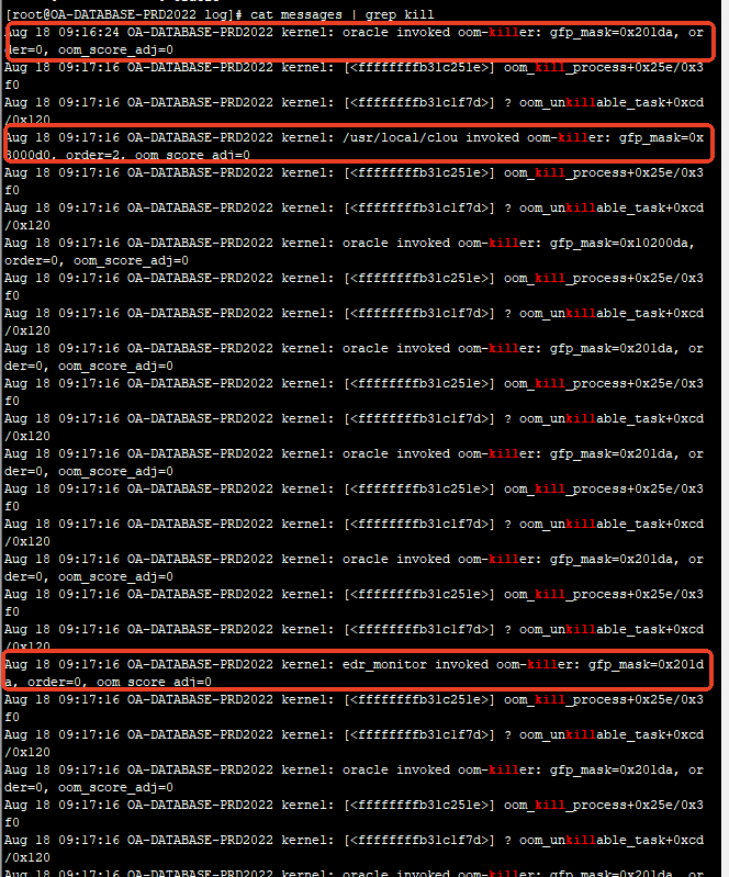 # OA数据库服务器内次异常增长问题分析 ## 一、问题描述 时间:2025/08/18 09:17 服务器:10\.7\.8\.8 问题概述:数据库服务器的oracle数据库服务被中断,导致OA系统不可用 ## 二、问题分析 1、 服务器资源分析(服务器的cpu/内存/磁盘读写在1\-2分钟内全部跑满)  (CPU)  (内存)  (磁盘io) 2、 数据库告警日志分析:oracle KSRPMON进程异常,数据库连接KSRPMON超时,直接导致数据库宕掉,  (告警日志:9点10\+分时间段的日志信息)  (告警日志:宕机后发生数据块异常告警) 3、 数据库服务器系统日志分析: OOM杀掉了oracle/edr/alicloud等的部分进程(KSRPMON进程)  (dmesg分析)  (OS messages日志) 4、资源跑高原因分析 1\) EDR原因排查:基本排除 EDR内存耗用排查:深信服反馈EDR软件使用内存几十兆左右; EDR内存泄漏可能性排查:无泄漏 2\)ORACLE数据库排查:当时服务器top 5进程皆为oracle进程  (2025/08/18 09:13:45 top 5 进程) 3\)AWR报告分析:sql\_id\=’[**2q36jkyj2u7rm**](file:///C:\Users\XUM\Desktop\awrrpt_1_41082_41083.html#2q36jkyj2u7rm)’ 在执行时间/cpu使用率等耗用较高(该值取自数据库8点\-9点数据库快照,9点\-10点快照因数据库中断原因无法获取)  以上,问题复盘如下: 1. **源头 (09:10 AM)**:应用端**高负载操作**(很可能是sql\_id\=’[2q36jkyj2u7rm](file:///C:\Users\XUM\Desktop\awrrpt_1_41082_41083.html#2q36jkyj2u7rm)’)开始运行,它产生了海量的读写操作。 2. **I/O瓶颈 (09:10 AM)**:巨大的读写流量瞬间淹没了磁盘 **vdb** 的I/O处理能力。 * 磁盘利用率 %util 爆表(71%)。 * I/O响应时间 await 飙升到灾难性的 **61毫秒**。 3. **系统僵死 (09:10 \- 09:14\)**:由于I/O是系统最慢的组件,I/O瓶颈导致: * **CPU**:因等待I/O完成而空闲。 * **内存**:因Oracle进程无法及时将数据写入磁盘,脏数据在内存中堆积,可用内存逐渐耗尽。 * **进程**:所有依赖I/O的进程(包括Oracle和EDR)都卡在等待状态。 4. **EDR崩溃 (09:14:57\)**:EDR进程 (edr\_agent) 在尝试执行文件扫描或系统调用时,因系统资源极度紧张(特别是I/O无响应)而**发生段错误**。它是系统僵死的**受害者**和**指示灯**。 5. **最终崩溃 (09:16:24\)**:内存最终被耗尽,触发OOM\-Killer,杀死Oracle关键进程,导致 ORA\-16198 和实例终止,并最终留下数据块损坏 ORA\-01578。 ## 三、处理及总结 1、停用EDR:已完成 2、持续观察oracle数据库告警日志文件/系统日志messages:关闭EDR后,系统messages未发生edr 段错误,alert.log未发现ORA\-01578/ORA\-01110报错。 3、修复损坏的数据块:确定已修复,重建索引OA. IDX\_INFO\_READ\_US  4、优化sql\_id\=[2q36jkyj2u7rm](file:///C:\Users\XUM\Desktop\awrrpt_1_41082_41083.html#2q36jkyj2u7rm):已完成,添加索引后可以大大降低该语句的资源消耗: create index OA.IDX\_HRMRESOURCE\_WORKCODE on OA.HRMRESOURCE("WORKCODE"); create index OA.IDX\_HRMLEADERINFO\_EMP\_LECODE on OA.HRMLEADERINFO("employee\_code","leader\_code"); 5、调整sql\_id\=[2q36jkyj2u7rm](file:///C:\Users\XUM\Desktop\awrrpt_1_41082_41083.html#2q36jkyj2u7rm)相关作业的执行时间:尽量避开早上8点半\-10点半时间段,该时间段为OA系统繁忙时间段,特别是每周一早上9点左右是最繁忙的时候,应尽量避开。 6、sql\_id\=[2q36jkyj2u7rm](file:///C:\Users\XUM\Desktop\awrrpt_1_41082_41083.html#2q36jkyj2u7rm)语句为全量更新全部人员的上级,该SQL每次执行35s左右,在8/18日早上8点\-9点之间累计执行了17次,9点\-10点之间执行次数不可统计: UPDATE HRMRESOURCE D1 SET ( D1\.managerid ) \= ( SELECT H2\.ID AS managerid FROM HRMRESOURCE H JOIN HRMLEADERINFO L ON L."employee\_code" \= H.WORKCODE JOIN HRMRESOURCE H2 ON L."leader\_code" \= H2\.WORKCODE WHERE D1\.WORKCODE \= H.WORKCODE ) WHERE D1\.WORKCODE IS NOT NULL