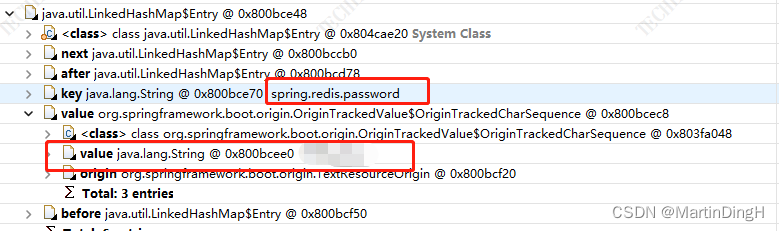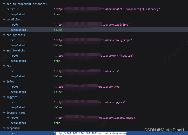 最近在公司从一波漏扫中扫到一个Spring Boot Actuator 未授权访问漏洞,于是研究了一下. 首先,发现漏洞后查看/actuator目录,发现确实存在未授权访问。  本想查看一下env目录,听说又可以利用的信息,但是报404,可能做了设置;然后访问了configprops目录,发现了redis的IP和端口,端口就是redis的默认端口6379。 想看下redis存不存在未授权访问,连了一下发现要认证,看来还是我想的轻松了。 于是下载了heapdump信息,使用MAT查看可以获得redis密码还有一些其他密码。spring boot 2.x 版本 heapdump使用如下语句查询结果,最终结果存储在 java.util.LinkedHashMap$Entry 实例的键值对中。 ```sql select * from java.util.LinkedHashMap$Entry x WHERE (toString(x.key).contains("password")) ```  然后kali直接连redis,输入密码,进去了。  后面可以写入shell或者ssh免密登录,就没继续做了。