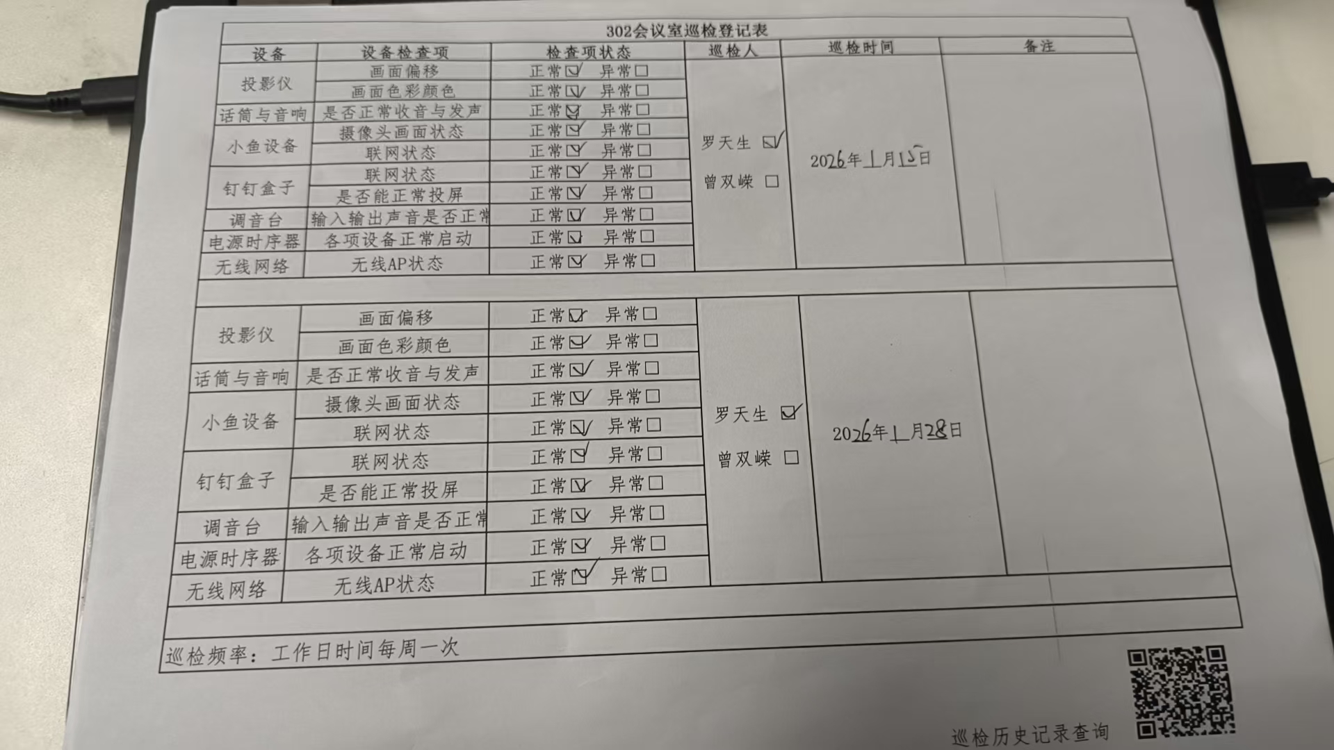 302会议室历史巡检记录