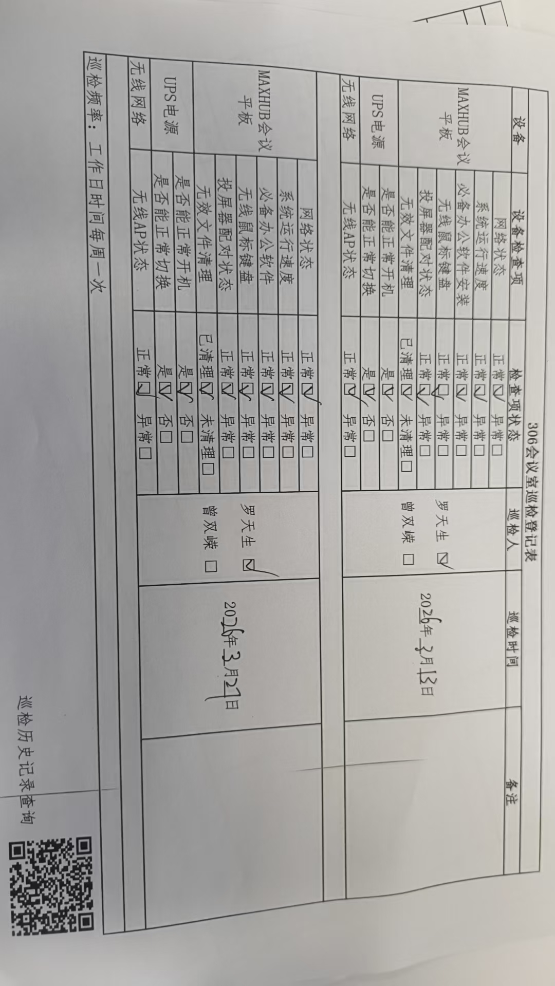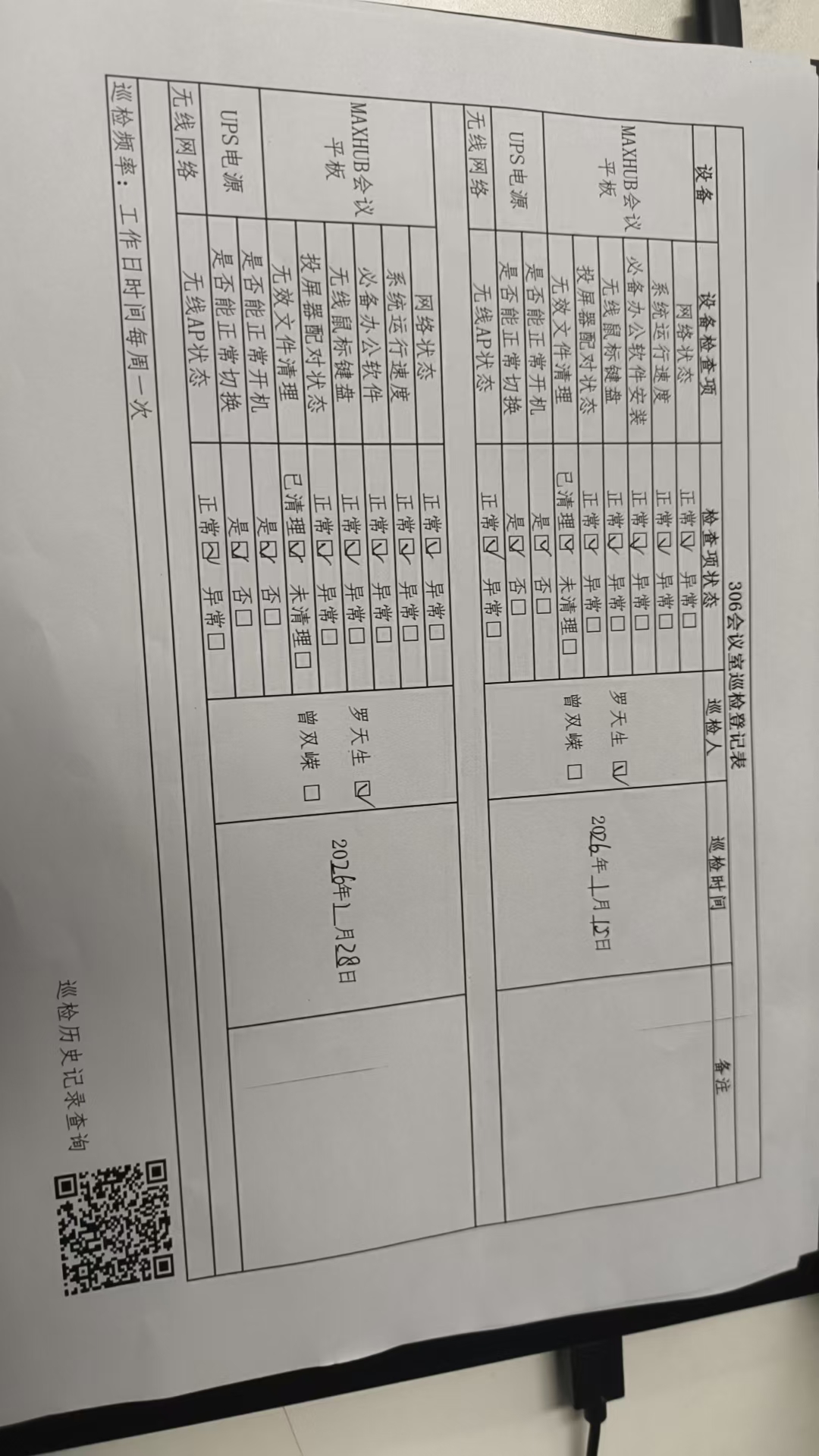 306会议室历史巡检记录
