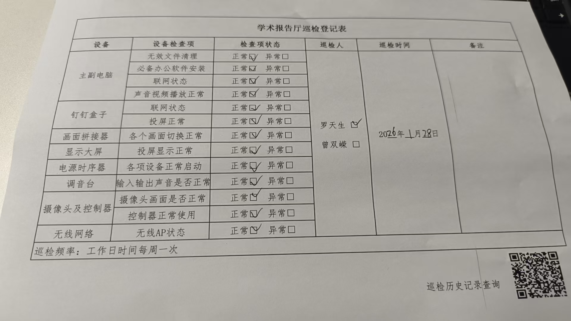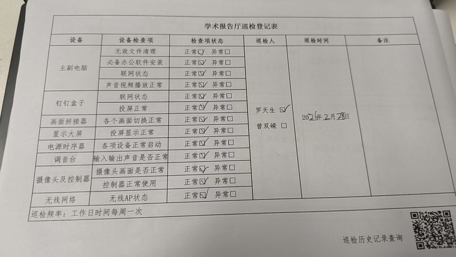 学术报告厅历史巡检记录