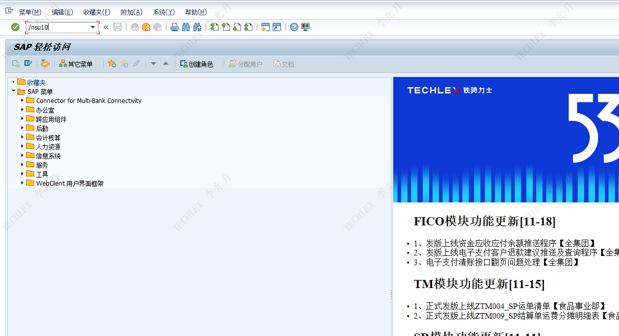 事务代码是 su10        保存