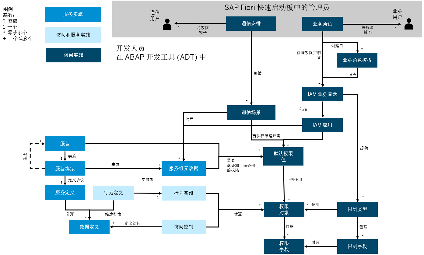 # SAP权限对象 1. **记录笔记** 1. 在分配权限时,明明已经为用户分配了ST22事务码权限,用户在打开ST22时,进入到tcode但提示无权限使用功能。 2. 通过SU53功能跟踪,发现是没有授权对象xxx导致。 3. 什么是授权对象? 2. **整理线索** 1. **重点一** 1. 权限字段 1. 权限字段是权限范围中最小单位。 2. 该字段有数据元素及其值定义。 3. 是业务对象的属性。 2. 个人总结 1. 权限字段是根据tcode事务码的数据元素及值的不同范围进行用户权限管控 2. **重点二** 1. 权限对象 1. 权限对象最多可对10个与AND相关的权限字段进行分组。 2. 权限对象确保可针对多个条件运行复杂的权限检查。 2. 个人总结 1. 权限对象可以定义最多10个字段和相应的值,类似:where后面可以跟10个and条件 1. 详细 2. 个人总结 3. **定时回顾** 1. 编写时间2023年11月22日 2. 2023年11月27日回顾 4. **正文** 我们假设您创建业务服务。在服务实施期间,创建用于公开数据定义的服务定义。在 ABAP RESTful 应用程序编程模型 (RAP) 中,使用行为指定各个业务对象的操作和字段属性。稍后可以增强行为定义和实施以包括权限控制。有关 ABAP RESTful 应用程序编程模型 (RAP) 的详细信息,请参阅 [SAP - ABAP RESTful 应用程序编程模型](https://help.sap.com/viewer/923180ddb98240829d935862025004d6/Cloud/en-US/289477a81eec4d4e84c0302fb6835035.html)文档。ABAP RESTful 应用程序编程模型的文档还介绍了服务实施,即创建在下图中以中蓝色突出显示的所有对象。  要提供对您的业务服务的访问权限,还需在 ABAP 开发工具 (ADT) 中创建其他开发对象。这些附加对象有助于定义用户最终可以通过其权限访问哪些数据。此类对象可以是权限对象、权限字段、IAM 应用、IAM 目录等(在上图中以浅蓝色和深蓝色突出显示)。 我们来看一下每个对象。 ## 权限字段 权限字段是权限范围中的最小单位。该字段由数据元素及其值定义;是业务对象的属性。权限字段的示例为**“产品类型”**,其值为**“物料”**或**“服务”**等,且具有相应业务对象**“产品”**。在本指南中使用的奖金管理解决方案示例中,可能的权限字段为**“奖金变式”**,其值为**“费率”**和**“金额”**。 已在系统中预定义且可重用于保护自定义应用程序的标准权限字段为**“活动”**。与每个权限字段一样,**“活动”**具有多个可检查用户权限的值,例如创建、更新、删除、发布等。 您可以为每个权限字段分配一个检查表。该表将作为在业务角色维护中配置权限期间使用该字段时的值帮助。 ## 权限对象 权限对象最多可对 10 个与 AND 相关的权限字段进行分组。权限对象确保可针对多个条件运行复杂的权限检查。例如,您可以创建定义用户可以访问哪些产品的权限对象,例如**“物料”**类型、**“服务”**类型或两种类型的产品。通常,在权限对象中具有**“活动”**权限字段,因为您要定义用户可执行或不可执行的活动类型。根据业务上下文,您可以添加更多权限字段,例如采购订单类型。在权限对象中,还可以定义您认为相关的**“活动”**字段值。 创建权限字段和权限对象后,必须针对权限对象实施检查,以确保只有授权用户才能执行特定活动。在此检查期间,将程序中指定的值与用户的权限中包含的值进行比较。 ## 权限检查 权限检查确定程序的当前用户是否具有特定权限。该检查会将特定权限对象内特定权限字段所需的编程(固定或实际运行时)值与当前用户授予的权限进行比较。作为开发人员,您可以使用语句 *AUTHORITY-CHECK* 或使用访问控制来实施 ABAP 编码的权限检查。 ## 访问控制 ABAP 核心数据服务 (CDS) 具有自己的数据保护概念和访问控制权限。访问控制提供了一种实施保护的简单方法,以防止未经授权的读取访问。 有关访问控制的详细信息,请参阅 ABAP CDS 开发用户指南中的[访问控制](https://help.sap.com/viewer/f859579898c7494dbe2449bb7f278dcc/Cloud/en-US/7072ee4d6bf41014b5040bee4e204223.html)。 ## 权限控制 RESTful 应用程序编程模型中的权限控制可保护您的业务对象免受未授权的数据访问。您可以使用全局和基于实例的权限控制。全局权限用于仅取决于用户的所有权限检查。总的来说,您可以定义全局权限,以检查是否允许用户执行操作。实例权限用于所有额外取决于相关实体实例状态的权限检查。通过实例权限,您可以定义取决于实例字段值的权限。 权限控制是业务服务行为实施的一部分。 有关权限控制的详细信息,请参阅 ABAP RESTful 应用程序编程模型文档中的[权限控制](https://help.sap.com/viewer/923180ddb98240829d935862025004d6/Cloud/en-US/375a8124b22948688ac1c55297868d06.html)。 ## 默认权限值 可以为每个权限对象和业务服务定义默认权限值。业务服务添加到 IAM 应用或通信场景后,将自动分配这些默认权限值。但请注意,默认权限值可被 IAM 应用中设置的值以及业务角色或通信场景中的限制覆盖。 ## 限制字段 限制字段基于权限字段。用于限制对业务对象实例(例如产品)的访问。仅在提供对业务用户的访问权限时,限制才可用。 通过限制字段,您可以授权管理员在限制字段中创建具有不同值的多个业务角色。如果没有限制字段,作为开发人员,您需要为每个业务角色创建单独的 IAM 应用和业务目录。 例如,管理员想要为在系统中维护产品的产品主数据专家创建不同的业务角色。通过包含不同可用产品类型值的限制字段,您可