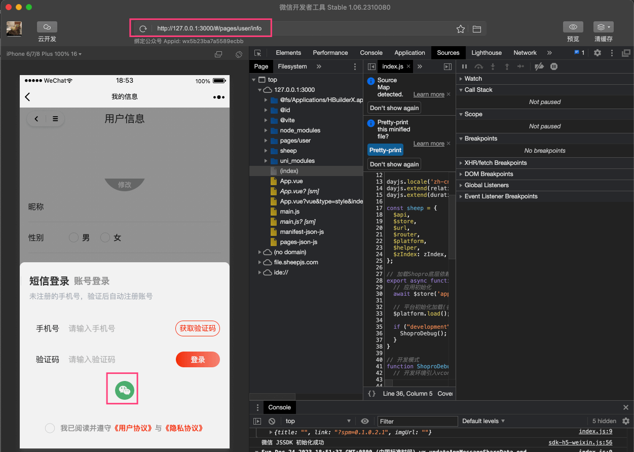 前置阅读文章: - 《用户体系》 - 《三方登录》 本文是 《三方登录》 的延伸,讲解 dtpc-mall-uniapp商城小程序如何实现微信 公众号 登录的功能。 ## 1. 公众号准备 ① 参考 微信公众平台接口测试帐号申请 (opens new window)链接,申请一个测试公众号。 ② 将 appID 和 appSecret 配置,设置到后端项目 application-local.yaml 的 wx.mp 配置项中。如下图所示:   ③ 修改“JS接口安全域名”,设置为前端的访问地址。例如说,现在本地是 http://127.0.0.1:3000。如下图所示:  注意:自己需要关注下自己的测试公众号!!! ④ 修改“网页授权获取用户基本信息”,设置为前端的访问地址。例如说,现在本地是 http://127.0.0.1:3000。如下图所示:  > <span style="font-family:楷体">补充说明:如果你是正式的公众号,需要额外看下这部分的内容: ① 设置“IP白名单”,在公众号的 [设置与开发 - 安全中心] 菜单,如下图所示:  ② 在公众号的 [设置与开发 - 公众号设置] 菜单,设置“JS接口安全域名”、“JS接口安全域名”、“网页授权域名”,如下图所示:  设置时,需要外网可访问,可以需要使用 natapp 进行内网穿透 上图的 MP_verify_XXXXXXXXXXXXXXXX.txt 文件,可以直接放在 yudao-mall-uniapp 商城项目的根目录 </span> ## 2. 代码实现 ### 2.1 项目启动 ① 参考 《快速启动【前端】》 文档的「2. uni-app 商城移动端」小节,将 dtpc-mall-uniapp 商城项目跑起来。 ② 下载[ 微信开发者工具](http://https://developers.weixin.qq.com/miniprogram/dev/devtools/download.html " 微信开发者工具") ,并进行安装。安装后,选择「公众号网页项目」。如下图所示:  2.2 微信 JSSDK 访问 http://127.0.0.1:3000/ 地址(其它地址也可以),它会触发 微信 JSSDK (opens new window)初始化的逻辑,对应前端 sheep/libs/sdk-h5-weixin.js 文件的 #init(...) 方法中。 微信 JSSDK 所需要的签名,由后端的 AppAuthController 的 #createWeixinMpJsapiSignature(...) 方法所提供。 ### 2.3 登录流程 > <span style="font-family:楷体">友情提示: 可以简单阅读下 [《微信官方文档 —— 网页授权》](http://https://developers.weixin.qq.com/doc/offiaccount/OA_Web_Apps/Wechat_webpage_authorization.html "《微信官方文档 —— 网页授权》") 文章。</span> ① 访问 http://127.0.0.1:3000/#/pages/user/info 地址,触发弹出“登录窗口”,对应前端 sheep/components/s-auth-modal/s-auth-modal.vue 组件。如下图所示:  ② 点击「微信登录」图标,触发微信公众号登录。前端核心实现都在 sheep/platform/provider/wechat/officialAccount.js 的 #login(...) 方法中。它一共包含 2 个步骤。 ③ 【第一步】前端调用后端的 AppAuthController 的 #socialAuthRedirect(...) 方法,获得微信公众号的登录地址,并进行跳转。效果如下图:  ps:为了在微信登录成功后,可以回到登陆前的 URL 地址,会将该 URL 存储到 uni.setStorageSync('returnUrl', location.href) 中。 ④ 【第二步】点击「同意」按钮,跳转回前端的 pages/index/login.vue 页面,进行 真正的 微信登录逻辑。 此时,前端从 URL 中解析到微信回调提供的 code 授权码参数,调用后端的 AppAuthController 的 #socialLogin(...) 方法,进行登录逻辑。注意: - 情况一:如果该微信用户已经绑定会员用户,则直接进行登录 - 情况二:如果该微信用户没有绑定会员用户,则会自动创建一个会员用户,并进行登录。下次重新登录时,就走【情况一】的逻辑。 ps:登录成功后,通过 uni.getStorageSync('returnUrl') 获得登录前的 URL 地址,进行跳转。